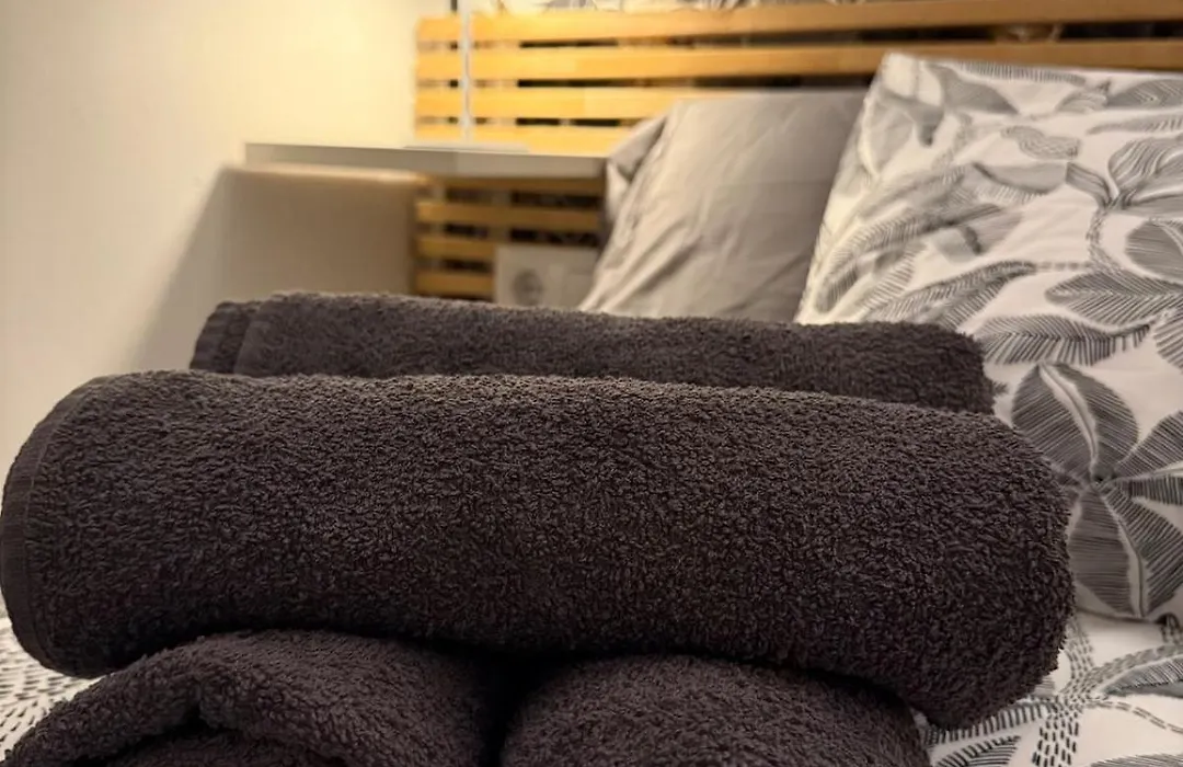 This apartment offers guests the convenient feature of towels in the bathroom.